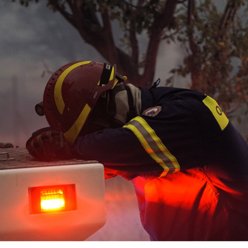 Συγκλονιστικές φωτογραφίες απο πυροσβέστες που για ακόμη μια φορά δίνουν πολύωρη μάχη με τις φλόγες εξαντλημένοι αλλά πάντα στο καθήκον τους
