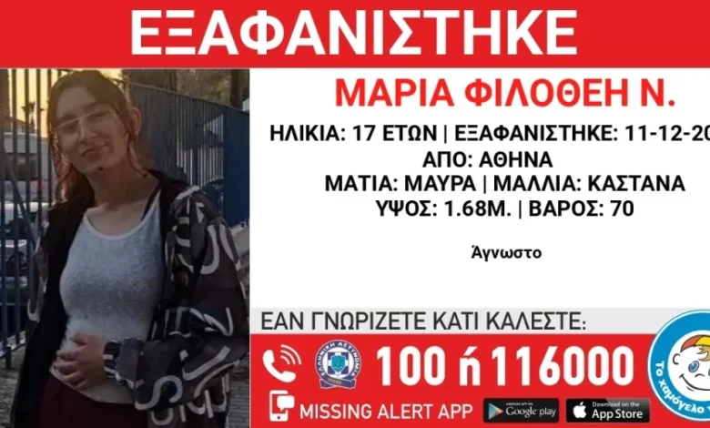 Συναγερμός έχει σημάνει στις αρχές για την εξαφάνιση ης 17χρονης Μαρίας – Φιλοθέης από την περιοχή της Αθήνας
