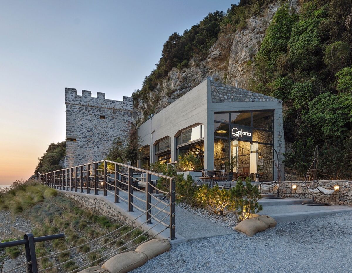 Ο πύργος αυτός, μισοπεσμένος, αξιοποιήθηκε επίσης και σήμερα στέκει ξανά όρθιος να θυμίζει άλλες εποχές. Ένα από τα ατού του χώρου είναι η θάλασσα που σκάει ακριβώς μπροστά στο Gallaria.