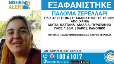 Χανιά:Missing alert για 22χρονη -«Κλέφτηκα με έναν άντρα»Το μήνυμα της στη μητέρα της