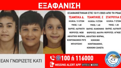 Π13.11.2023). Πιο συγκεκριμένα ,το μεσημέρι της Δευτέρας εξαφανίστηκαν από χώρο παιδικής προστασίας στην Ρόδο τα ανήλικα αδέρφια, Τσαμπίκα Δ., 13…