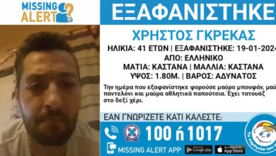 Συναγερμός έχει σημάνει για την εξαφάνιση 41χρονου Χρήστου Γκρέκα από το Ελληνικό με το Χαμόγελο του Παιδιού να προχωρά…