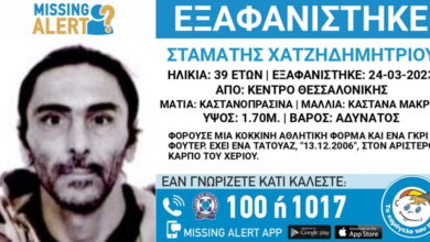 Silver Alert για την εξαφάνιση 29χρονου στη Θεσσαλονίκη – Σε κίνδυνο η ζωή του