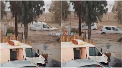 Πάρος ισχυρή νεροποντή :Χείμαρροι παρέσυραν οχήματα -Video