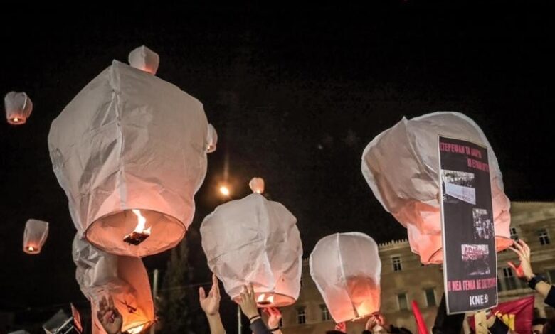 Μια από τις πιο συγκινητικές στιγμές της συγκέντρωσης ήταν η ανάγνωση των ονομάτων των θυμάτων, ενώ οι διαδηλωτές άφησαν φαναράκια να υψωθούν στον ουρανό, τιμώντας τη μνήμη τους μέσα σε απόλυτη σιωπή.