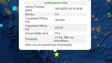 Σεισμός 5,4 Ρίχτερ στα Αντικύθηρα-αισθητός και στην Αθήνα