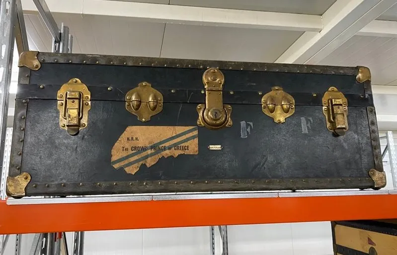 Μία από τις δεκάδες βαλίτσες της τέως βασίλισσας Φρειδερίκης που βρέθηκαν σφραγισμένες.