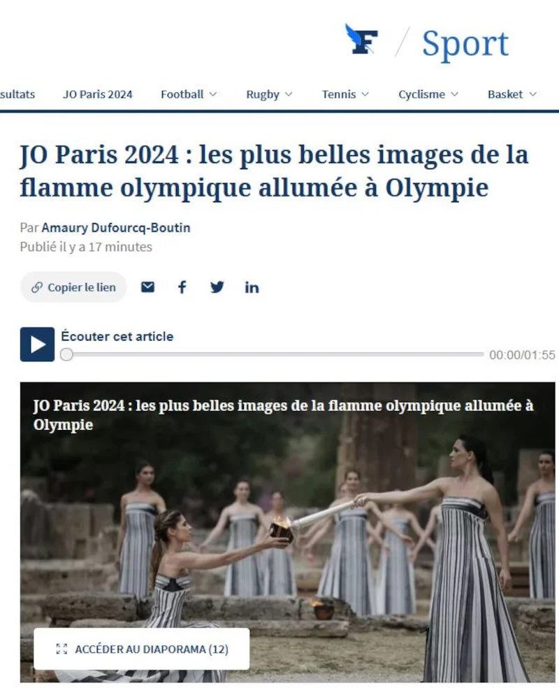 Την εντυπωσιακή τελετή αφής της Ολυμπιακής Φλόγας στην αρχαία Ολυμπία, κάλυψαν εκτενώς όλα τα γαλλικά μέσα ενημέρωσης.