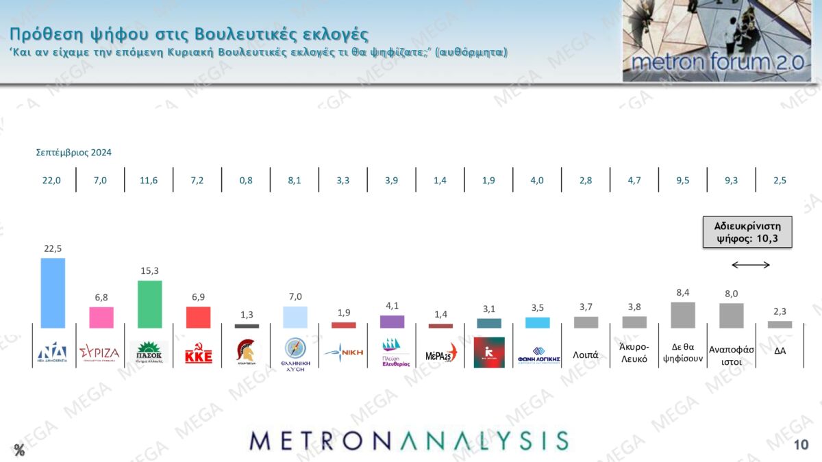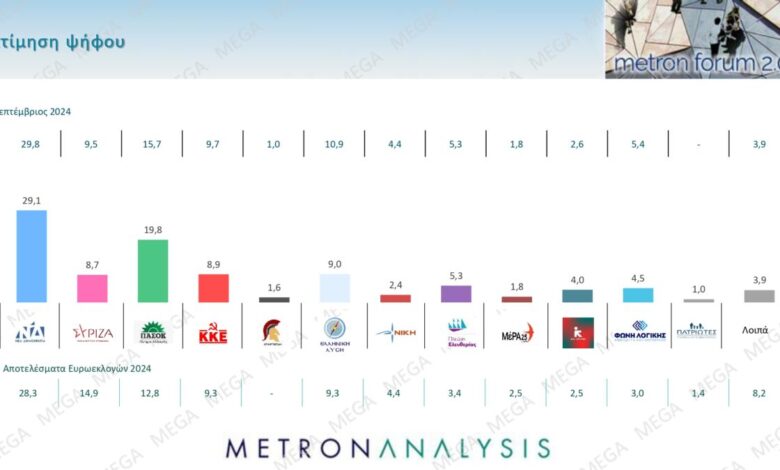 Δημοσκόπηση Metron analysis εκτίμηση ψήφου: Στο 19,8% το ΠΑΣΟΚ ,πέμπτος ο ΣΥΡΙΖΑ με 8,7%
