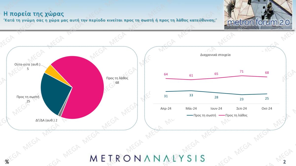 Όσον αφορά για την πορεία της χώρας προς τη λάθος λέει πως κινείται το 68% και προς την σωστή το 25%.