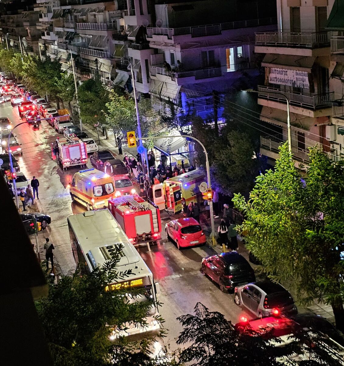 Το ασθενοφόρο μετέφερε τον τραυματία στο νοσοκομείο “Παπανικολάου“.