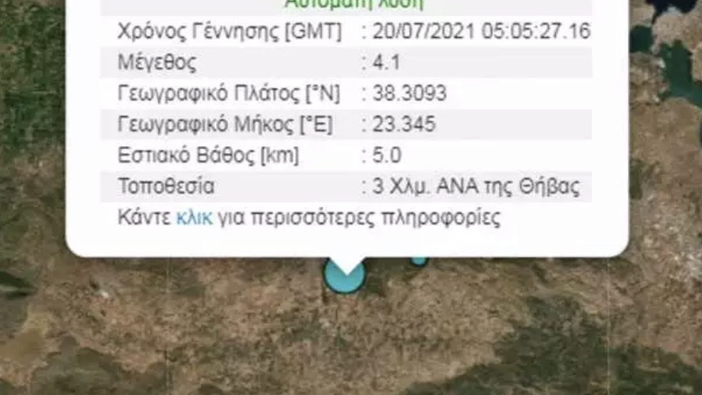 Θήβα:Σεισμική δόνηση 4.1 Ρίχτερ σε μικρό εστιακό βάθος