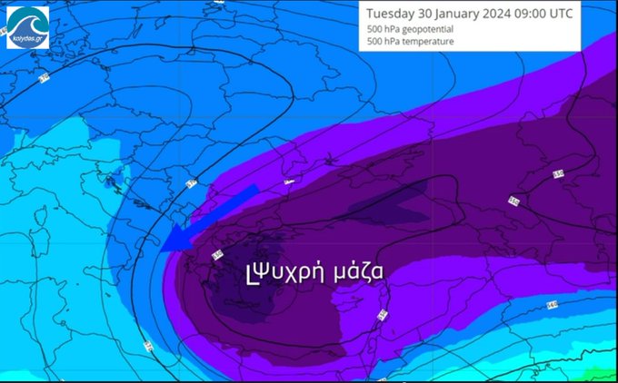 Δείτε την κίνηση του ανώτερου χαμηλού μαζί με την ψυχρή μάζα που το συνοδεύει».
