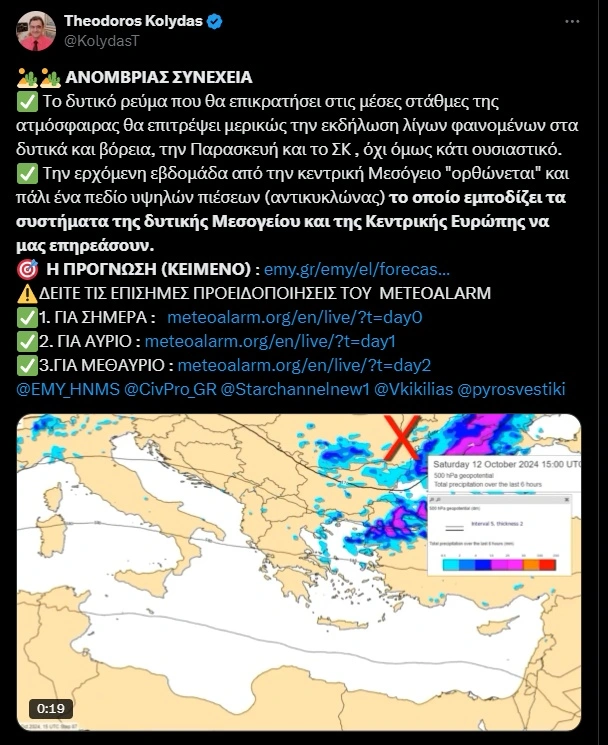 Θοδωρής Κολυδάς: «Ορθώνεται» αντικυκλώνας – Πώς θα επηρεάσει τη χώρα μας