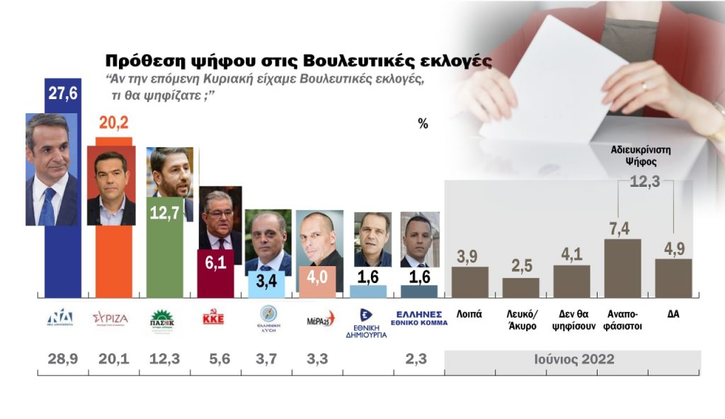 Η αδιευκρίνιστη ψήφος φτάνει το 12,3%.