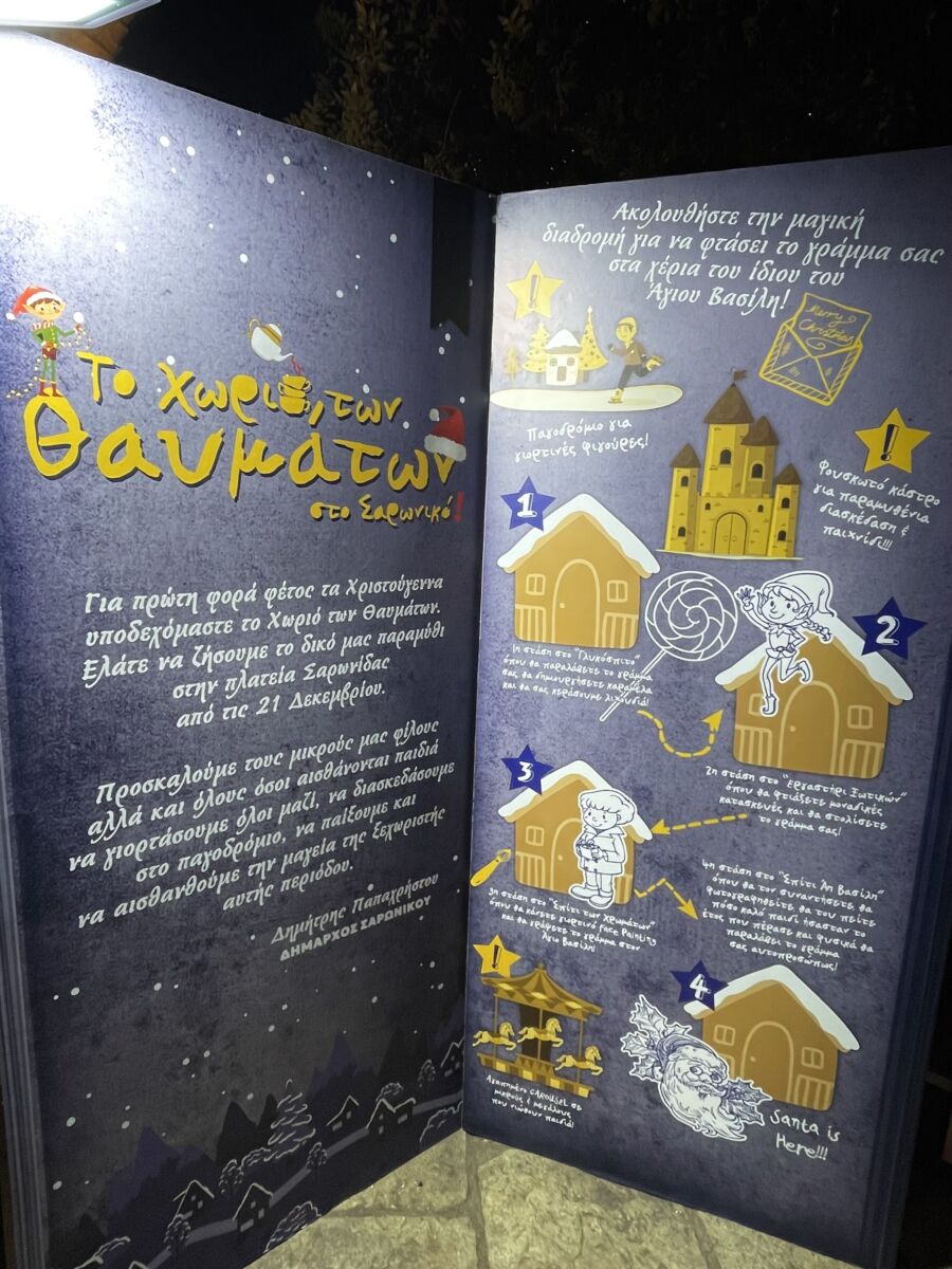Η Σαρωνίδα φέτος βάζει τα γιορτινά της και φιλοξενεί στη κεντρική της πλατεία που ήδη λάμπει το Χωριό των Θαυμάτων