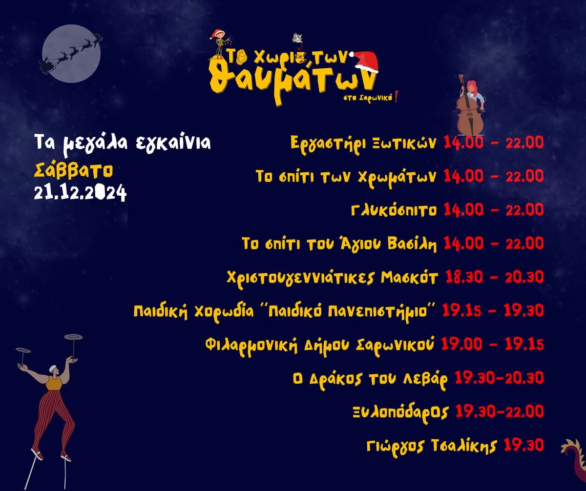 Το Χωριό των Θαυμάτων στην Σαρωνίδα απο αύριο Σάββατο 21 Δεκεμβρίου θα δώσει λάμψη στις γιορτές μας και θα μας κάνει να νιώσουμε μικροί μεγάλοι την «μαγεία των γιορτών»!