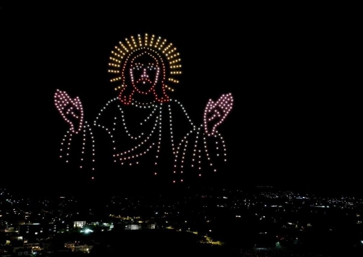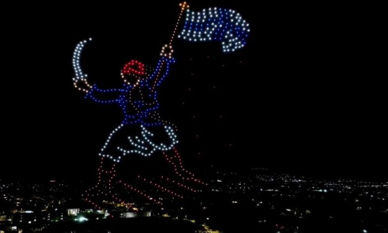 Περίπου 500 drones φώτισαν τον ουρανό της πόλης, δημιουργώντας μια μοναδική οπτικοακουστική εμπειρία που συνδύαζε την ιστορία με τη σύγχρονη τεχνολογία.