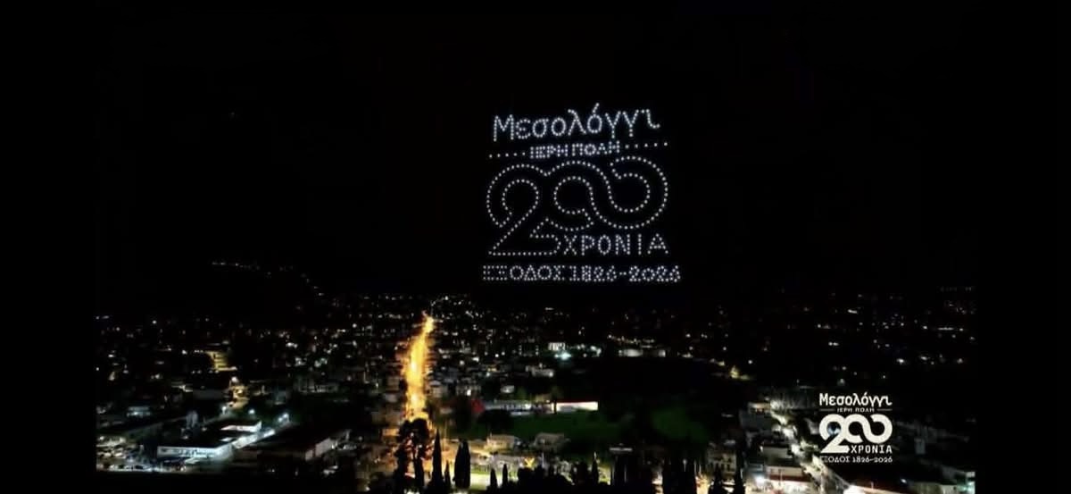 Το εντυπωσιακό drone show που πραγματοποιήθηκε στο Μεσολόγγι το βράδυ της 4ης Απριλίου 2026 αποτέλεσε το κορυφαίο γεγονός των εκδηλώσεων για τη συμπλήρωση 200 χρόνων από την Έξοδο του Μεσολογγίου.
