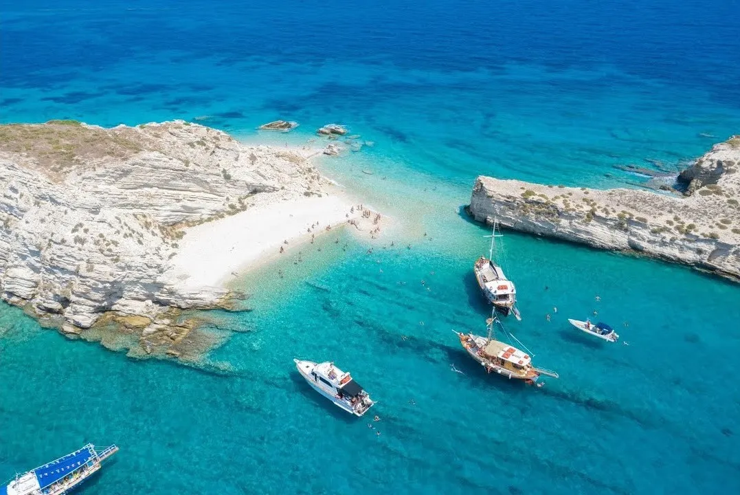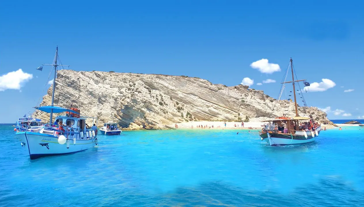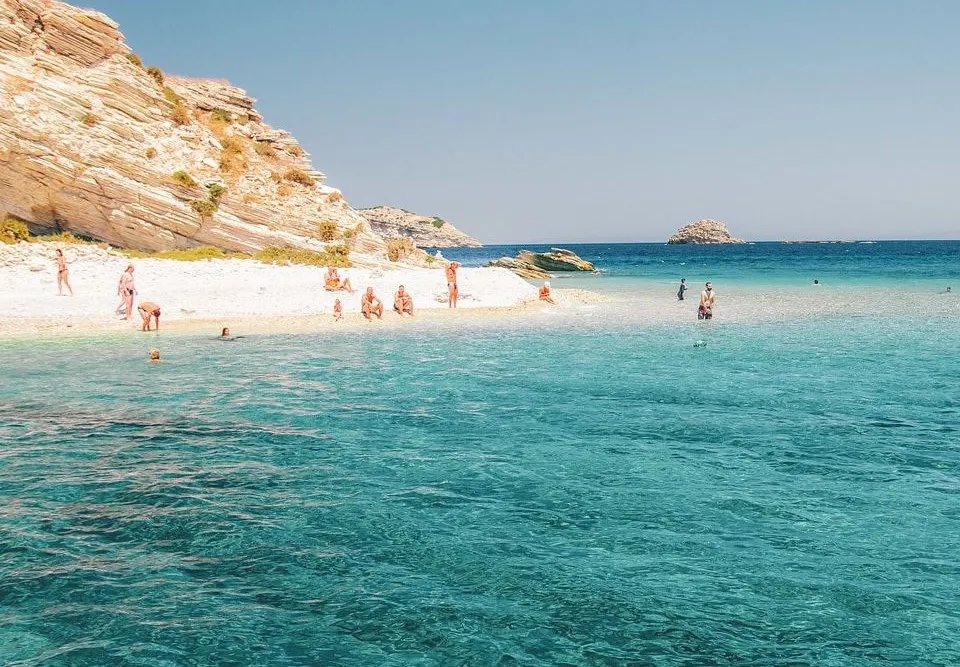Τα “Τηγανάκια”, με τα φημισμένα νερά, είναι στους Αρκιούς. Θα πάτε με εκδρομικά καϊκια απο τους Λειψούς.