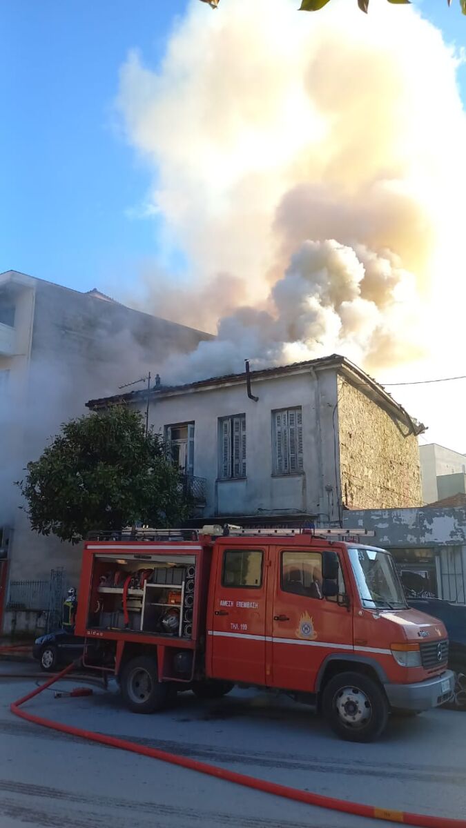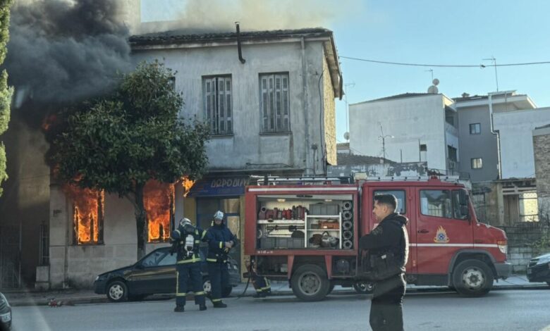 Τρίκαλα :Στις φλόγες τυλίχτηκε σπίτι απέναντι από τον Μητροπολιτικό Ναό