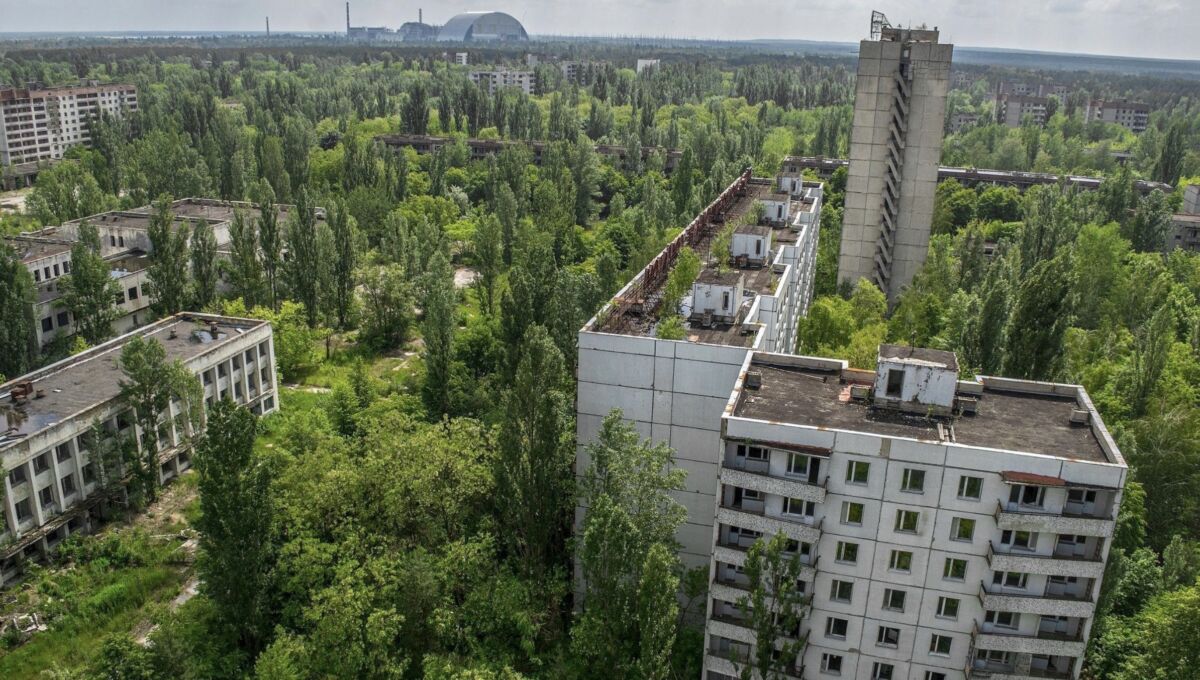Η ζώνη αποκλεισμού γύρω από το Τσερνόμπιλ παραμένει 40 χρόνια μετά σε μεγάλο βαθμό ακατοίκητη, ενώ το νέο προστατευτικό κάλυμμα (“New Safe Confinement”) καλύπτει τον κατεστραμμένο αντιδραστήρα.