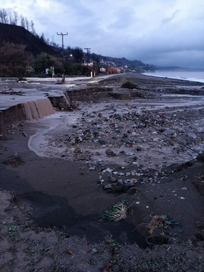 Μεγάλες καταστροφές και τεράστιες πλημμύρες στις περιοχές Αγία Άννα, Αχλάδι και Κοτσικιά που είχαν πληγεί απο τις φωτιές του καλοκαιριού.