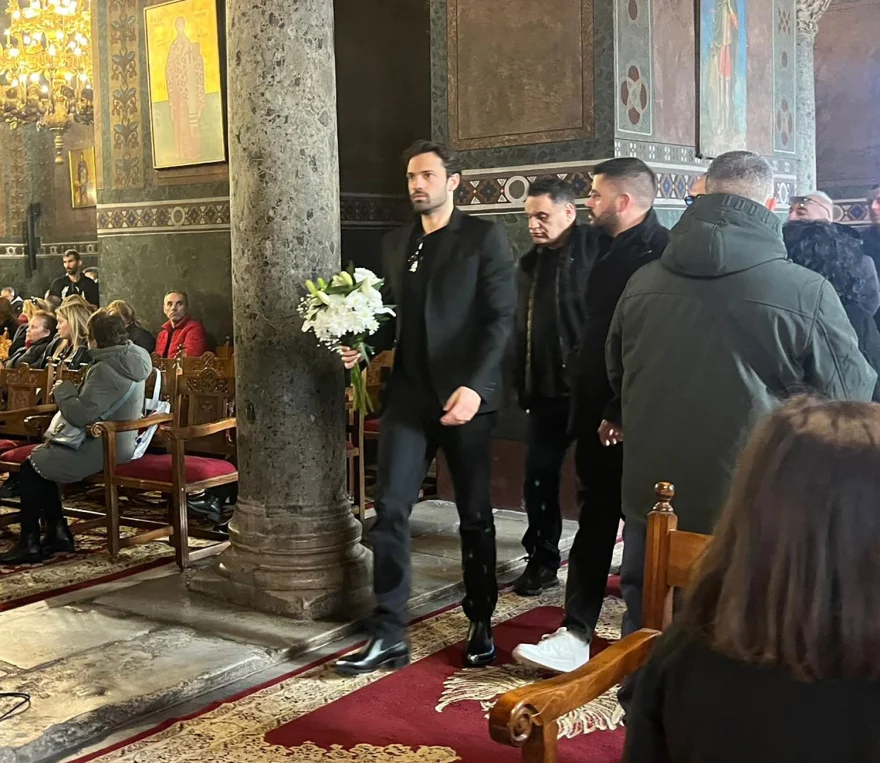 Ο τραγουδιστής Κώστας Μακεδόνας παραβρέθηκε επίσης στην εξόδιο ακολουθία.