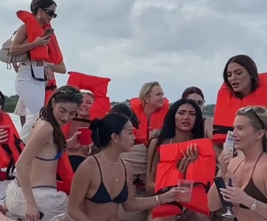 Στα πλάνα που κυκλοφορούν στο διαδίκτυο φαίνονται οι καλλίγραμμες νεαρές να φορούν τα πορτοκαλί σωσίβια, περιμένοντας τη διάσωσή τους με μια από αυτές να φωνάζει έντρομη «γα… τη ζωή μου».Το απρόοπτο, πάντως, δεν φάνηκε να επηρεάζει τη διάθεση των influencers, οι οποίες συνέχιζαν να χορεύουν και να γελάνε, αφού είχαν διασωθεί από το σκάφος που βυθιζόταν.
