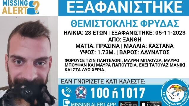 Εξαφανίστηκε στις 05/11/2023, από την πόλη της Ξάνθης ο Θεμιστοκλής Φρύδας, 28 ετών.