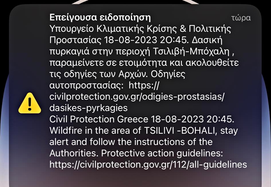 Προειδοποιητικό μήνυμα από το «112» έλαβαν οι κάτοικοι της περιοχής :