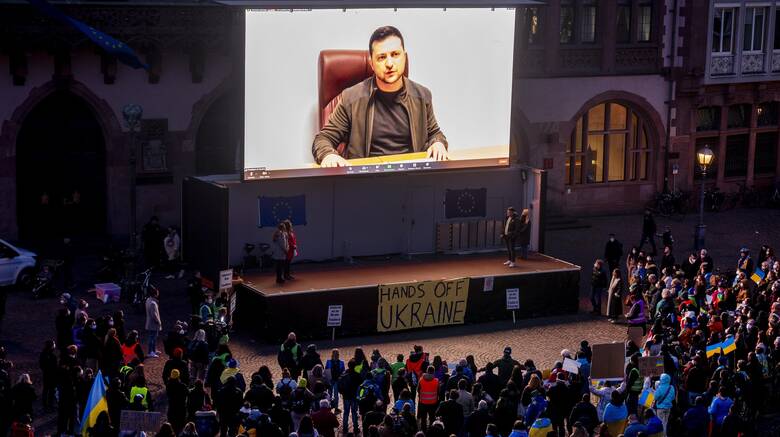 Νέο δραματικό μήνυμα απηύθυνε ο Πρόεδρος Ζελένσκι .Το μήνυμα προβλήθηκε σε αντιπολεμικές διαδηλώσεις μέσω γιγαντοοθονών που είχαν τοποθετηθεί σε πόλεις του κόσμου σε χώρες όπως η Πολωνία, η Γεωργία, η Γερμανία, η Γαλλία και η Ουγγαρία.